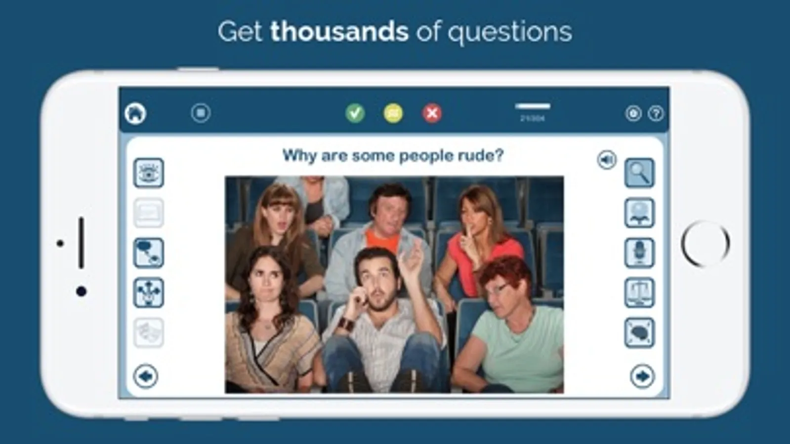 Coming up with fresh, attention-grabbing conversation starters every day is surprisingly hard, even for speech therapy professionals. Think of this app as your talk facilitator, taking the pressure and planning out of starting and maintaining dialogue while you monitor how your clients use their speech strategies.
