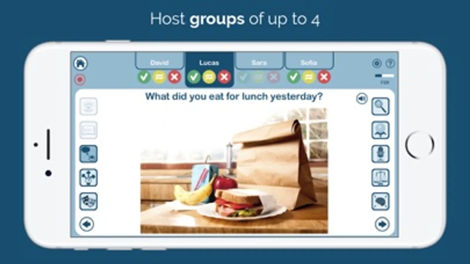 - Talk one-on-one, host groups of up to 4 at a time, and track improvement with ease