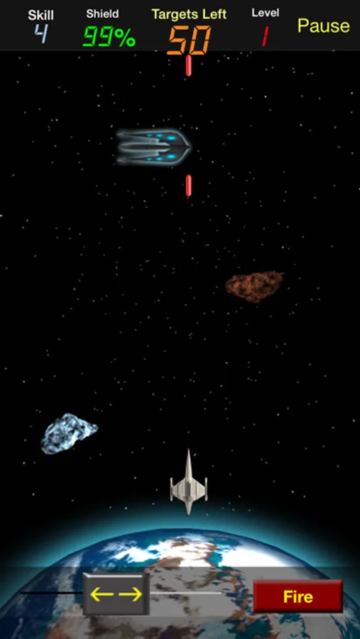 A series of severe meteor storms are on a collision course with Earth. Your mission is to go into space and destroy the meteors before they destroy the Earth! Be careful, you are not alone in space!