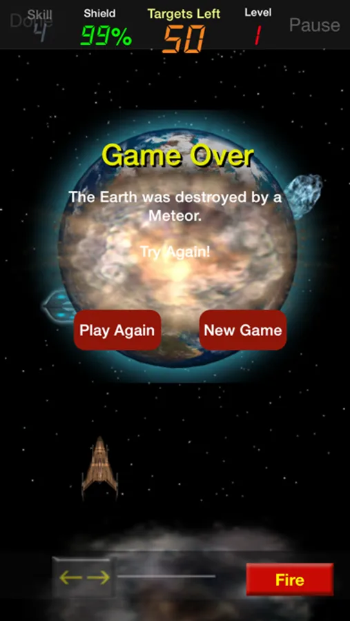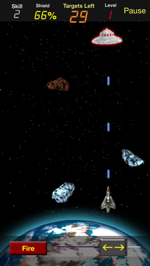 Severe Meteor Storms are headed for Earth! Can you stop the meteors and save Earth from total destruction? Use your ship's lasers to stop the meteors from destroying the Earth. Watch out for UFOs, they are deadly!