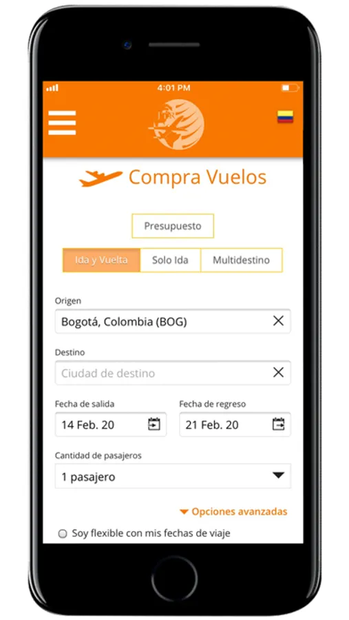 Esta aplicación permite al usuario la búsqueda por tarifa de tiquetes aéreos a nivel mundial, reserva y pago en linea de tiquetes aéreos que tengan trayectos en Colombia