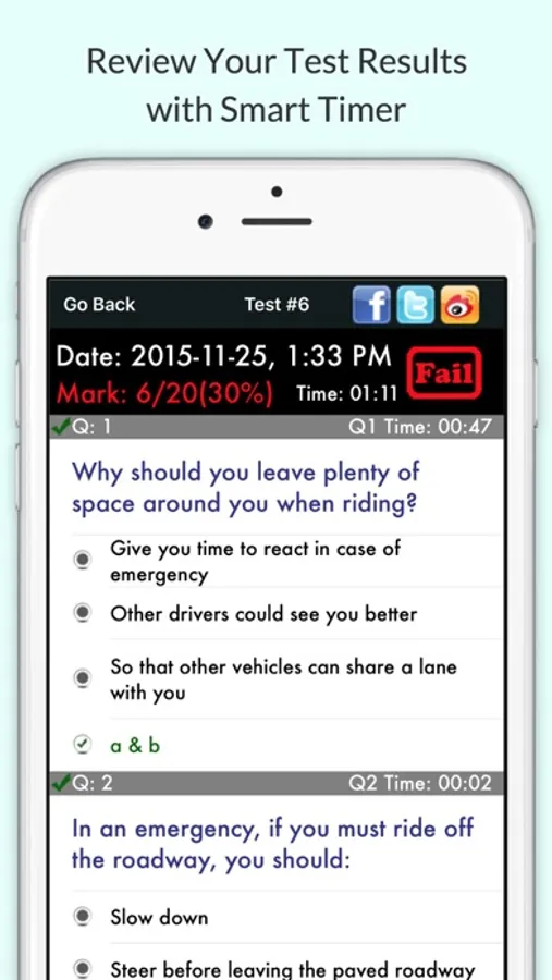 - View your Motorcycle practice test results