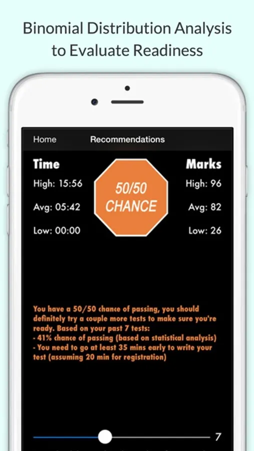 - Analyze your chances of passing the actual knowledge test based on your past performance