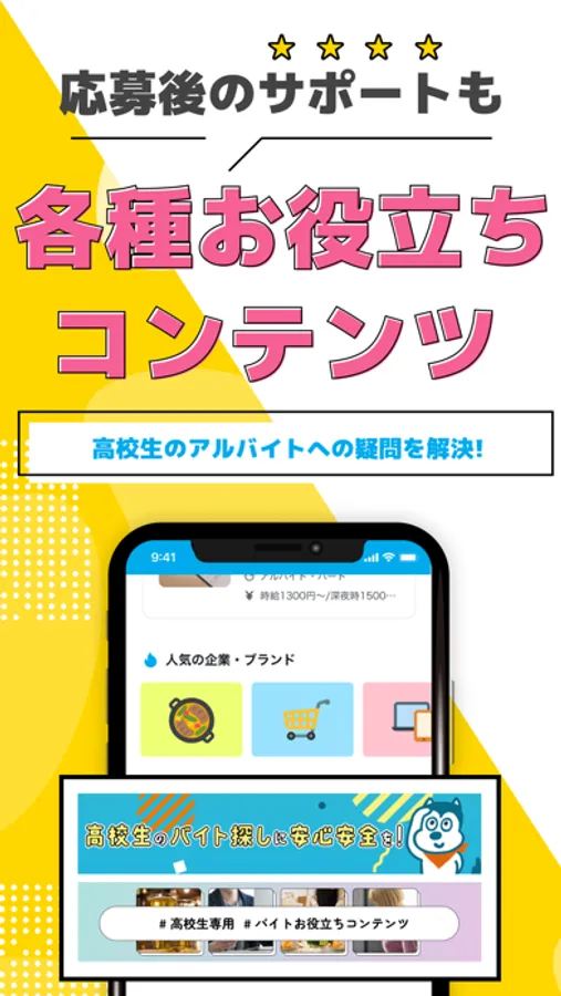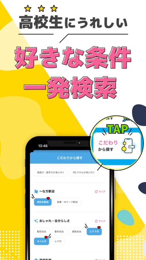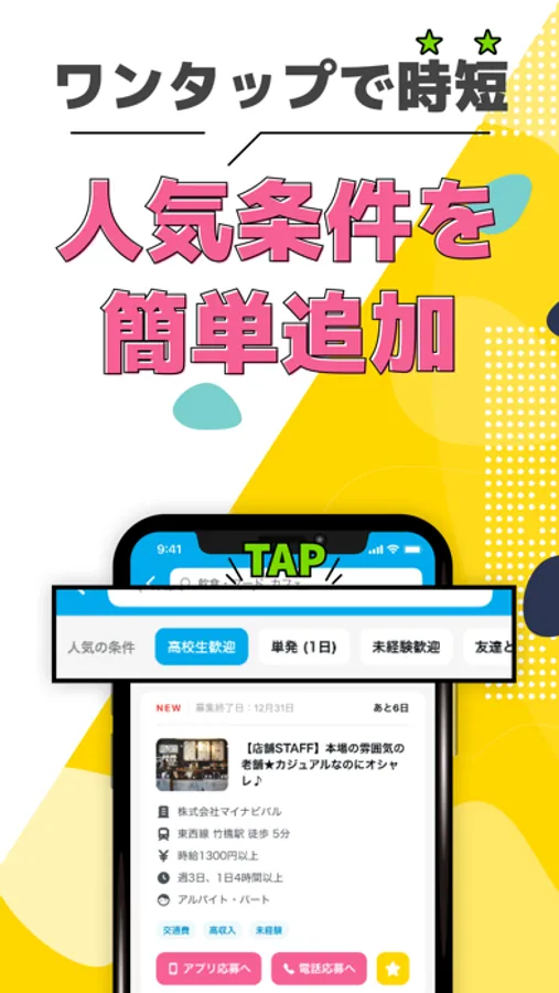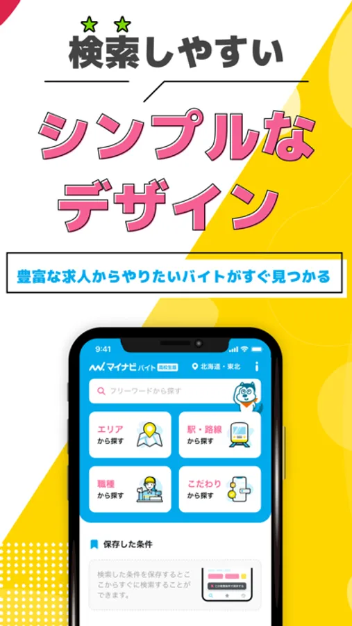 マイナビバイト高校生版では、高校生のバイト探しに合った機能が盛りだくさん!