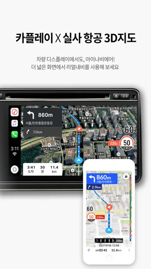 - 카플레이에서 실사 항공 3D 지도로 즐거운 드라이빙을 경험해보세요!