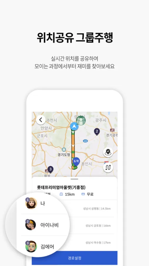 - 일행들과 실시간 위치와 목적지까지 남은 거리를 지도에서 편하게 공유하세요!