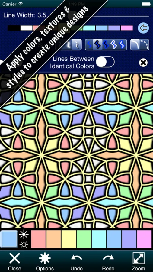 Pattern Artist is not a painting app but a novel template-based approach to creating captivating designs. The basics are simple - you will likely create your first design in just a few minutes - yet it has the capability and flexibility to be a serious art creation tool.