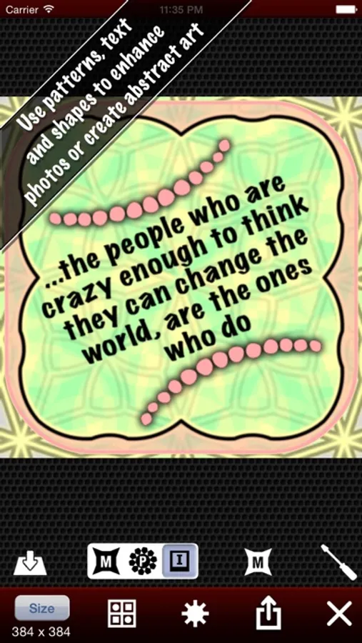 Pattern Artist is a unique and fun app for quickly creating beautiful custom repeating patterns and abstract art. Even if you don't consider yourself an artist, with Pattern Artist, you can be! Use it to make wallpapers, website backgrounds (including Facebook, Twitter and Flickr home pages), calendars, custom photo frames, pattern resources for other art programs, or just because you love making art!