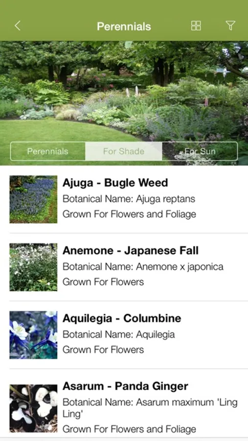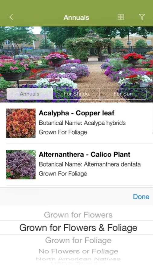 You may search all plants, or use the filter to search for annuals, perennials or those grown in sun, shade or for foliage or flowers. Scroll through any plant for useful information, swipe through hundreds of photos. Add plants to your list of favorites, and email some of these to your friends or spouse so they will buy you the plant you actually are lusting for.