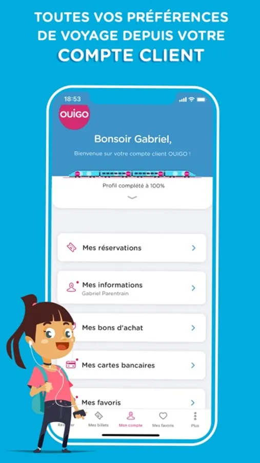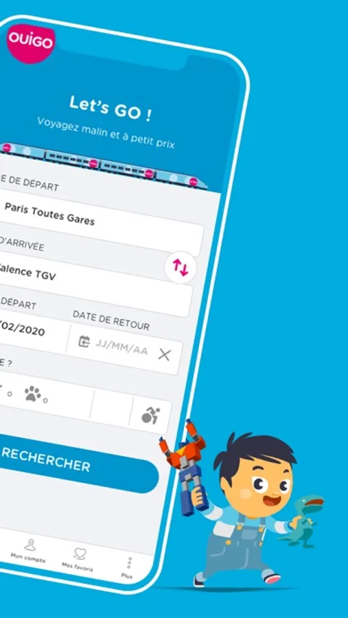 • Une réservation simplifiée grâce au compte client OUIGO et ses nombreuses fonctionnalités (trajets favoris, compagnons de voyage, paiement simplifié, bons d’achat...)