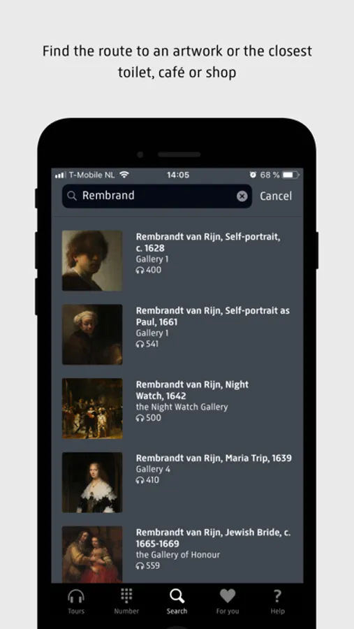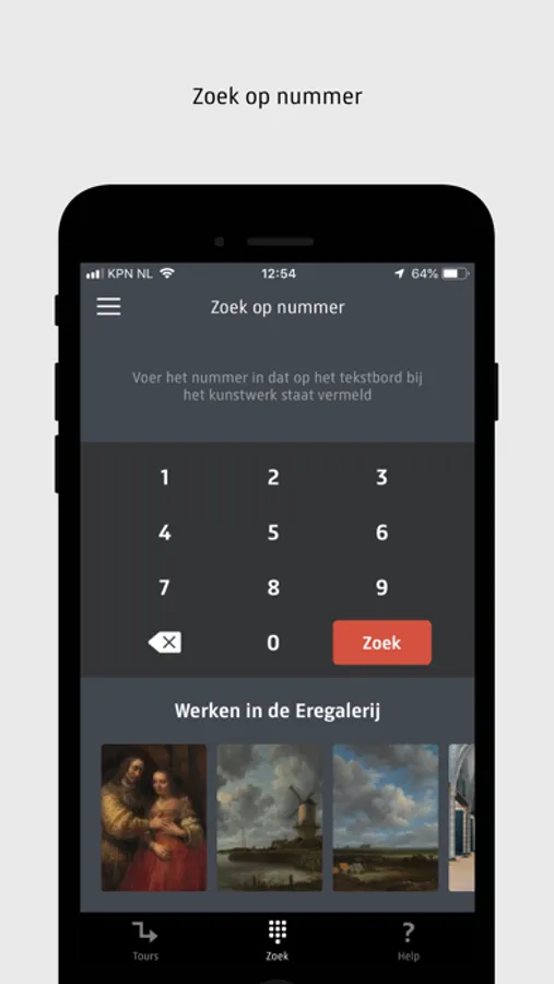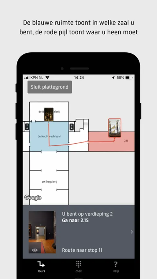 -Visit the museum your own way: follow a route or search for the numbers accompanying the works of art. Using interactive floor plans and directions, the app will take you to the start of the area or tour of your choice. During your tour, the app will take you from stop to stop. The blue space shows you where you are at all times. Please do keep your location facilities and Bluetooth switched on for this purpose.