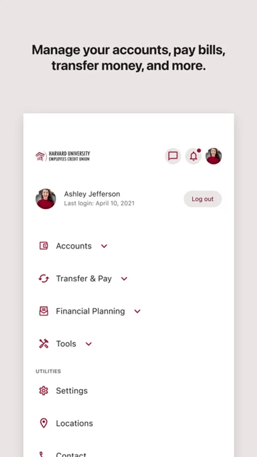 - Manage HUECU credit and debit cards, including travel notifications and turning cards on/off instantaneously