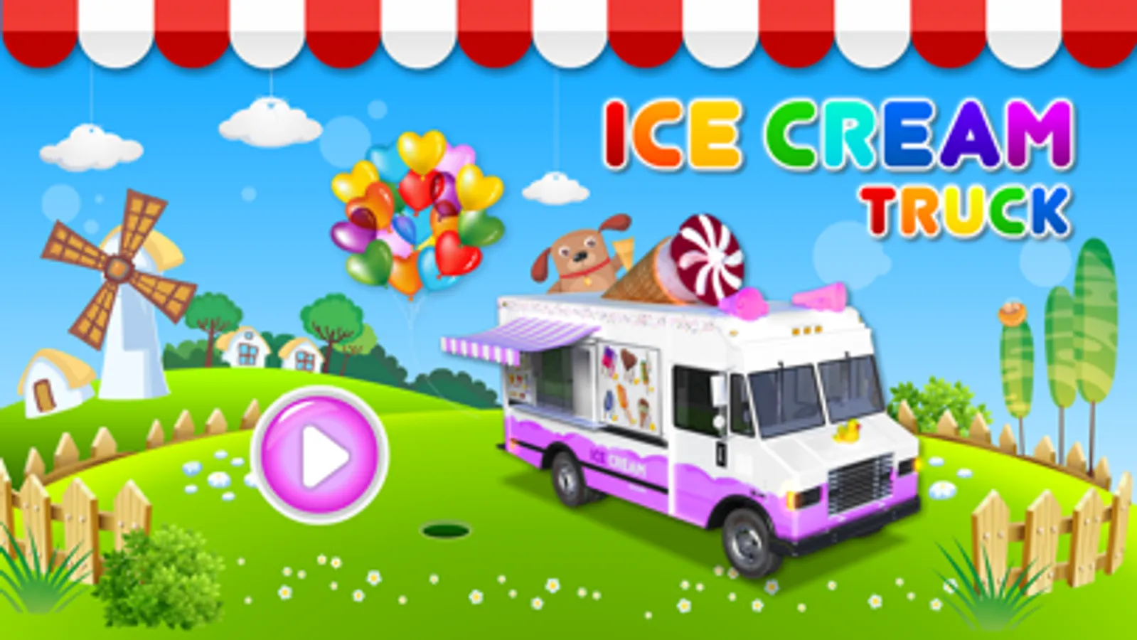Explore all the interesting things our ice cream truck has to offer! Turn on the lights, play the megaphones, pop the balloons, press all the funny little buttons and more! Swipe sideways with your two fingers to change the view of the truck or tap on the arrows to do the same.