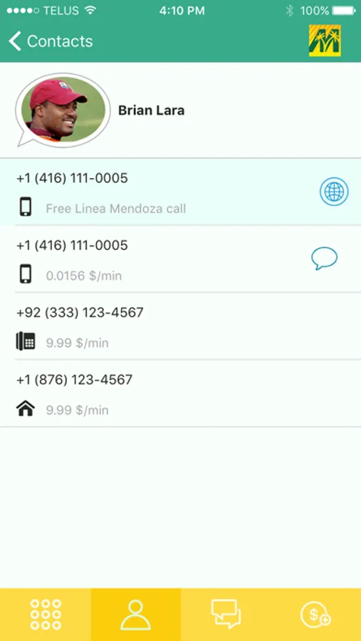 You own cellular number is your account with Linea Mendoza; you get a passcode in SMS message or a phone call to authenticate you. Default calling method is Local Access, when you dial a phone number or choose one from your contacts; dialer attaches this number to a local number on our servers and dials that number. (Your Wifi/Data internet connection will be used for this local number setup). This local number automatically connects the call to the long distance number you originally dialed. If you have chosen “Callback” as calling method; when you dial a number or choose one from your contacts, dialer will send this number to our servers and our server will send you a call back on your phone number and connect this call to the number you originally dialed. Last but not the least is the “Internet” calling which makes the call using Wifi/Data internet connection without using allocated minutes from your provider. Internet dialing is also the best choice while you are roaming out from your provider’s coverage and have an internet connection available to you.