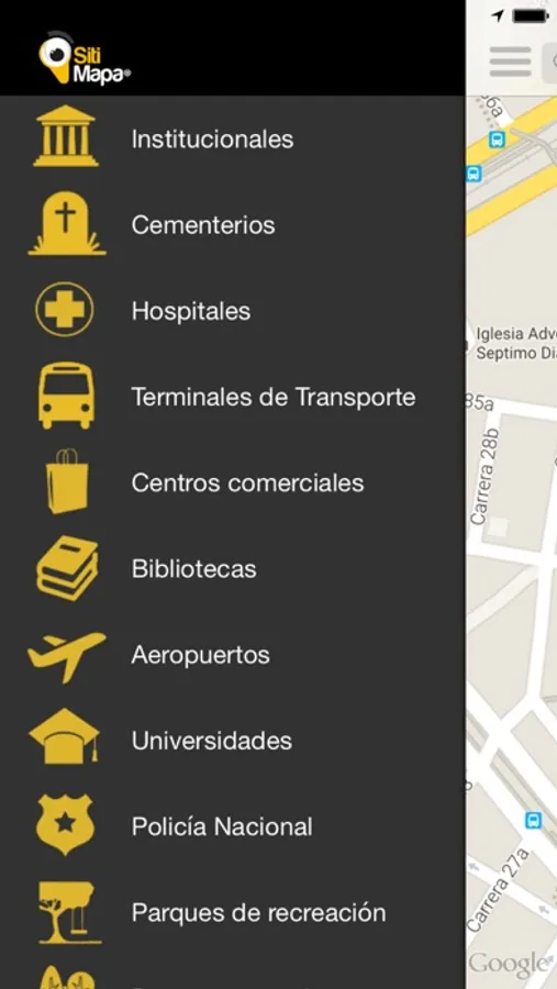 Utiliza los servicios de georreferenciación de sitimapa.com en tu móvil y busca los establecimientos comerciales más cercanos agrupados por categorías.