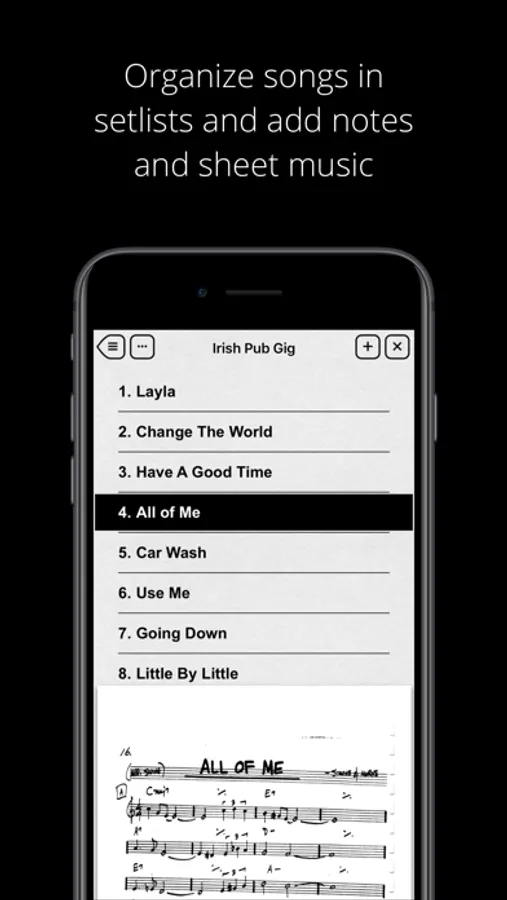 - Create setlists to arrange songs for your performances (In-App Purchase)