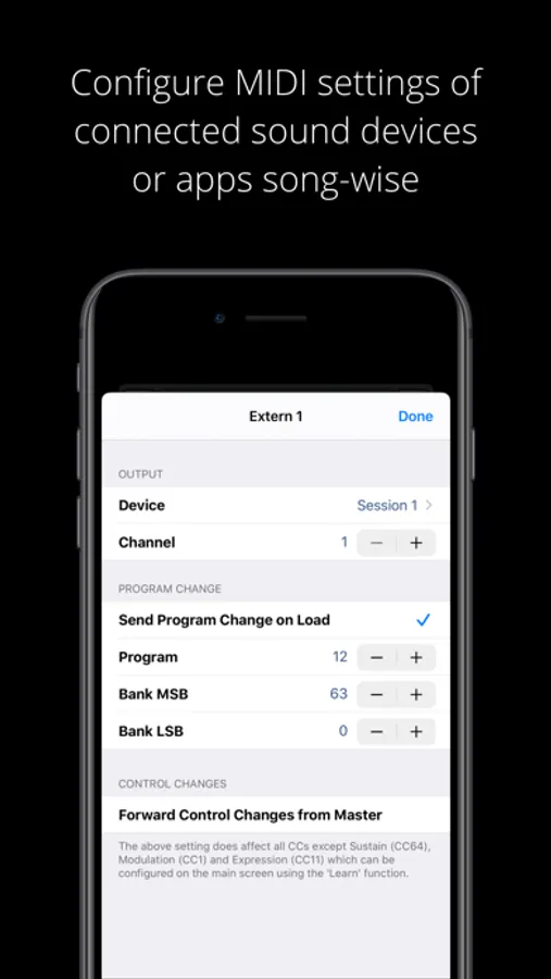 - Send volume and other control changes (reverb, chorus, pan) to your sound devices