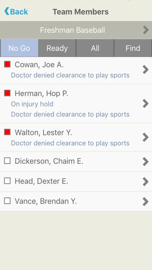 View players that may have medical alerts