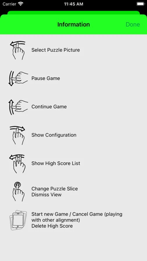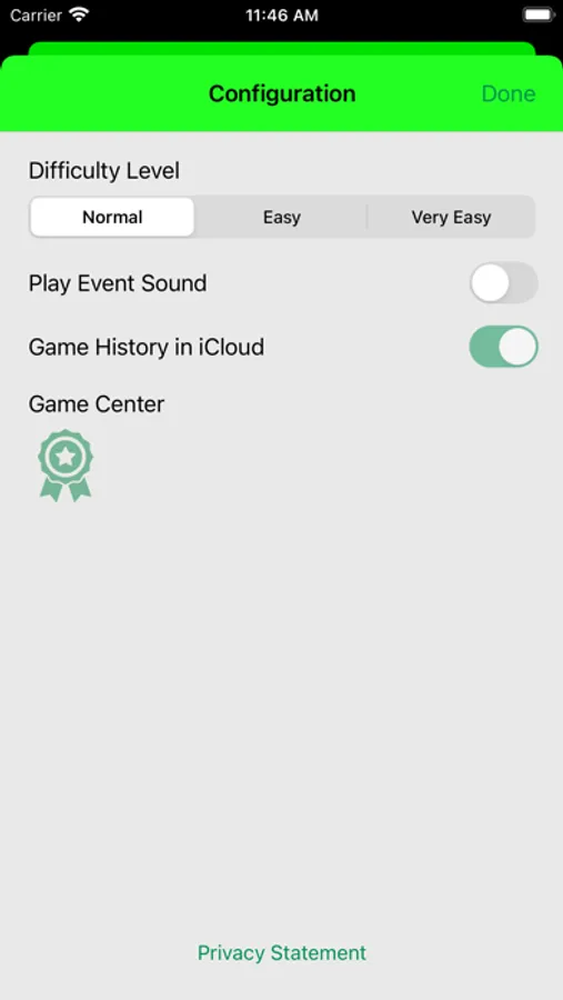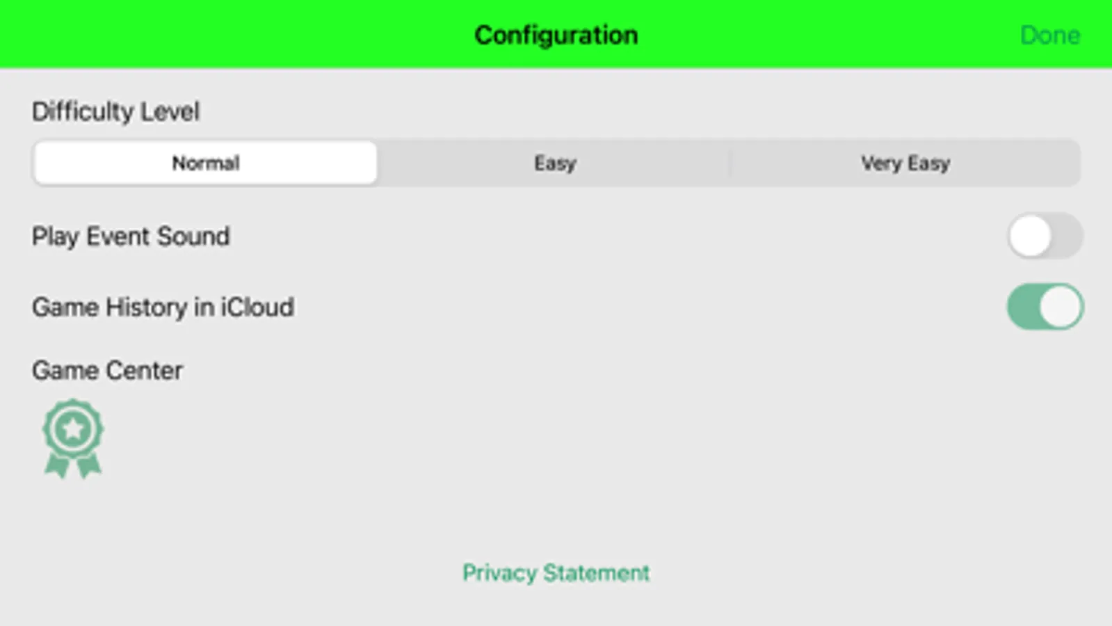 A puzzle can be solved in three different difficulty levels, and the successfully solved puzzles are stored in the game history for each level of difficulty, which can also be displayed on different devices via the iCloud.