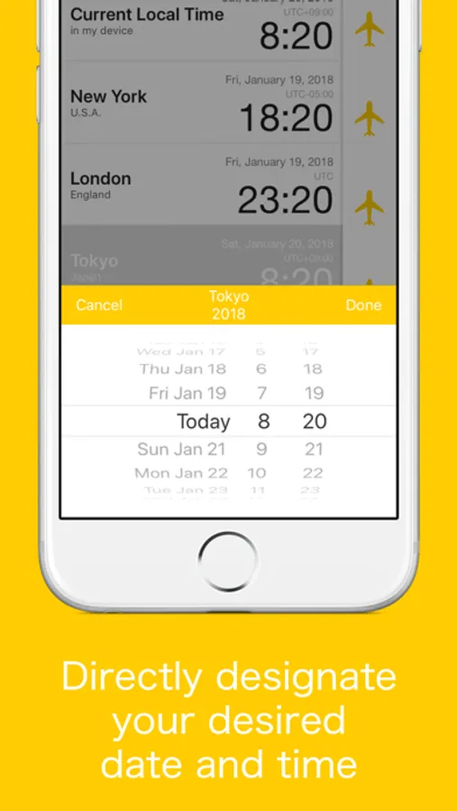 -Tap the name of the city to set the date and time in that location.