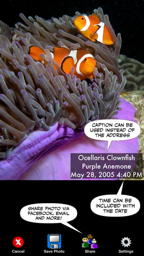 - Dated photos can be shared via Facebook, Twitter, email, text messages, and more!