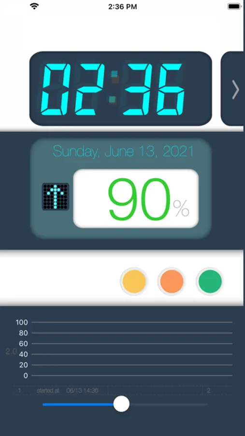 1, Display the Battery % status in three colors Green, Yellow and Red.