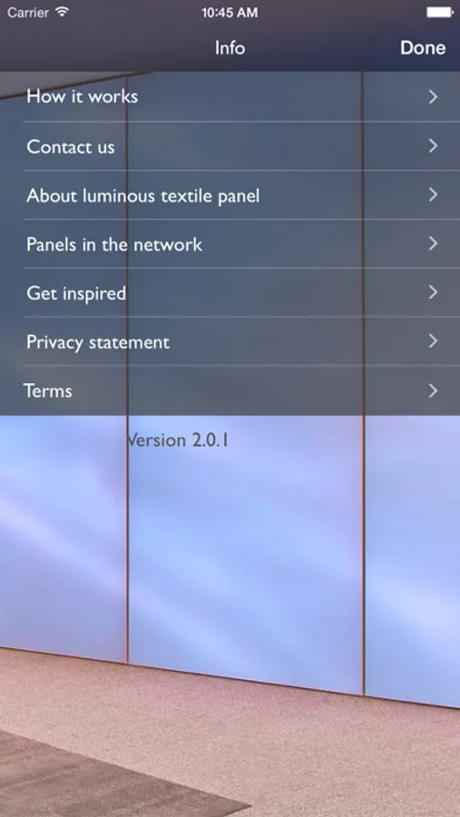 Use DiscoverMe LTP app to discover Luminous Textile Panels (LTP's) in a network. The app will automatically forward you to the Web UI (user interface), which is presented in the panel (LTP). Via the web UI of the panel, a user can control the panels in the network. The user of the app should have or is already allowed to access the network.