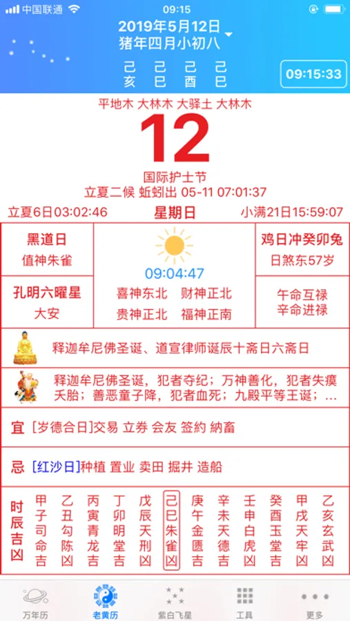 7.支持老黃曆顯示,此外還提供更多的民俗信息顯示!