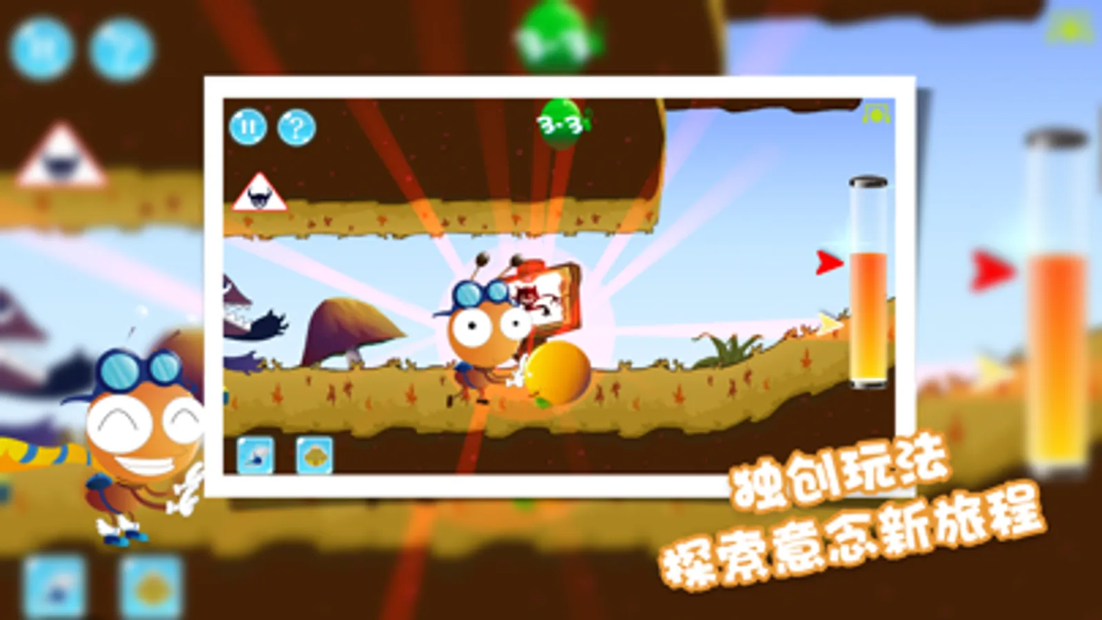 你的任务就是帮助蚂蚁在宝箱中变身出来的食物推到终点。通过你的专注力和放松力,推开障碍物,排除路上遇到危险,整个过程里,你需要集中注意力和排除干扰。你将和小蚂蚁一起历经春夏秋冬的场景变化,一起迎接各种趣味性的意念力挑战,如怪兽追赶、危机浮桥、蚂蚁对推、计时任务等等,让您在丰富、趣味的互动中,会持续训练的的专注和主动放松能力。