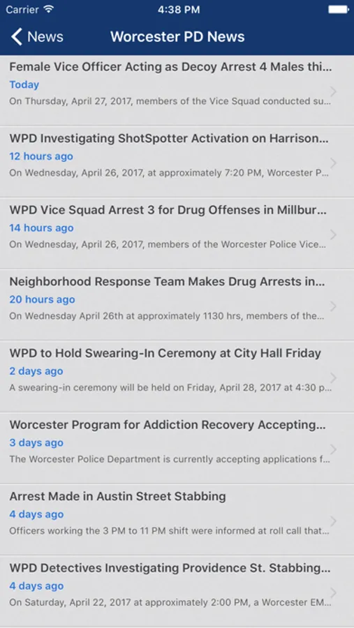 The Worcester Police Department mobile application gives you access to the latest news, updates, alerts, video productions and crime prevention methods. Serving the second largest city in New England, the men and women of the Worcester Police Department are committed to public safety and ensuring quality of life, through exceptional police services. As an agency at the forefront of utilizing social media and technological innovation, the Worcester Police Department is proud to present one of the first branded mobile applications for law enforcement on the East Coast. Chief Gary J. Gemme believes in embracing new technology in order to enhance the free flow of information to the public. Join us in our latest endeavor to provide current and valuable information that can now be accessed in the palm of your hand.