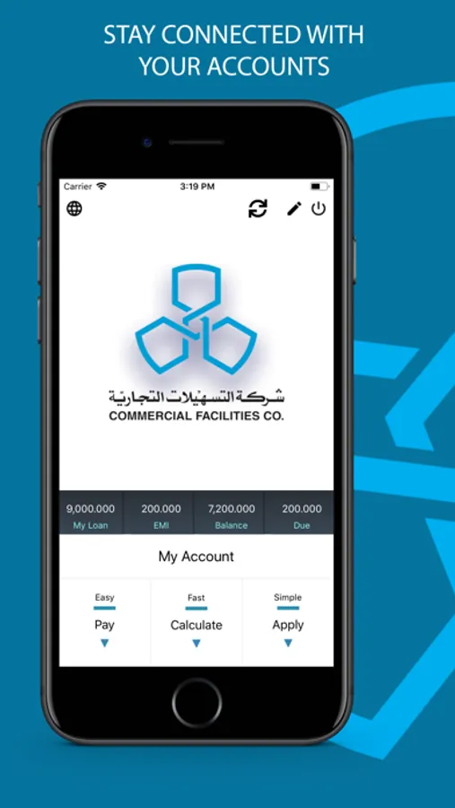 Welcome to Commercial Facilities Company’s iPhone app. This newly designed app provides ease and mobility to its users when dealing with Commercial Facilities Co. and its services. You can obtain loan, pay installments and review your account details all securely and conveniently.