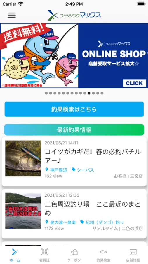 新たに、フィッシングマックス ポイント会員様用のマイページ機能を新搭載。画面に表示されるQRコードをレジにかざすだけでポイント加算できます。