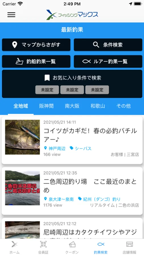 阪神間から大阪さらに和歌山地域の大阪湾岸を中心とした波止釣りからルアーまでほとんどのジャンルの釣りの最新釣果情報を見ることができ、魚種別の釣果情報も絞り込みが可能です。
