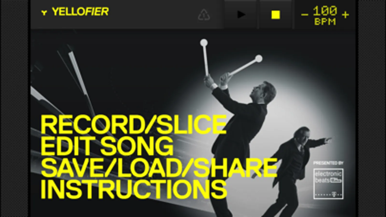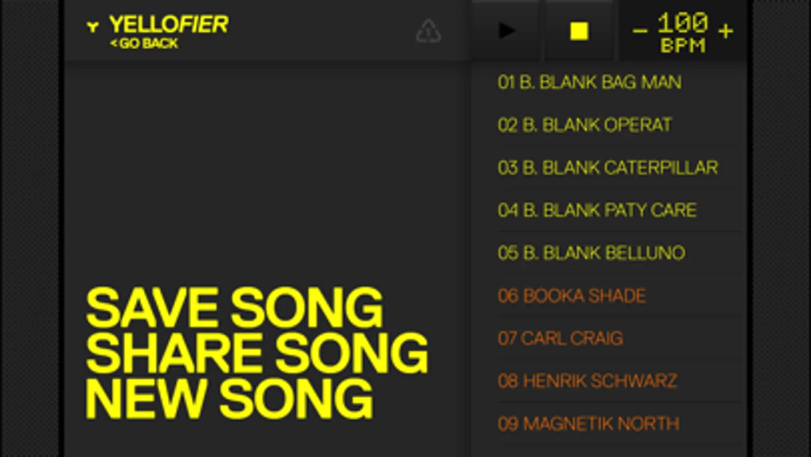 Create unique music with your own sounds and with the sounds of Yello’s musical maestro Boris Blank. The Yellofier also includes sounds and songs by some of the greatest musicians within electronic music. Anything can be yellofied!