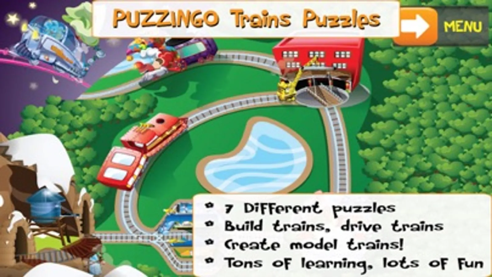 NOTE: This PUZZINGO Trains puzzle pack contains the same content as the In-App-Purchase “Trains¬” Pack within the free “PUZZINGO Kid’s Puzzle”.