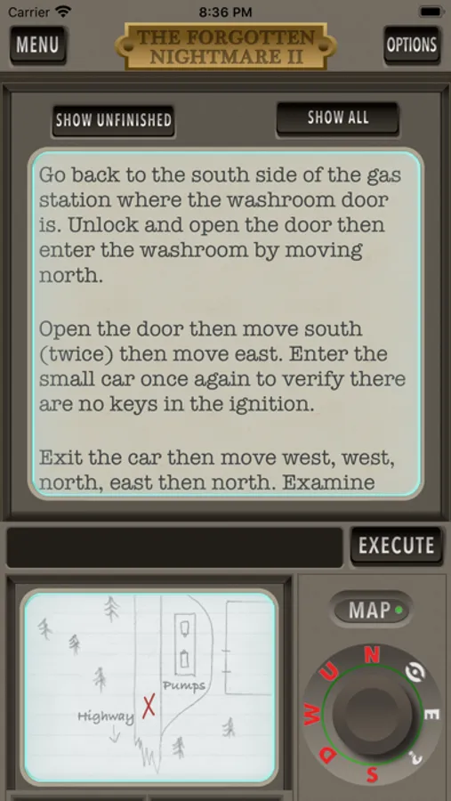 “The Forgotten Nightmare II: A New Reality” is the second chapter in a series of all text (Interactive Fiction) adventure games. Going against modern game evolution, the only graphics you will have is a map. It is a playable story which uses your imagination to paint the pictures. It is not simply a multiple choice game but has the ability to accept full commands with seemingly endless and often comical responses.