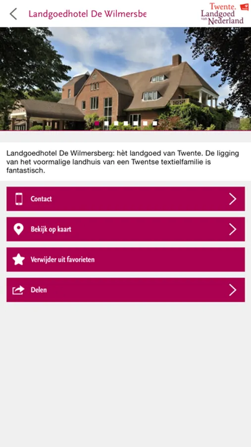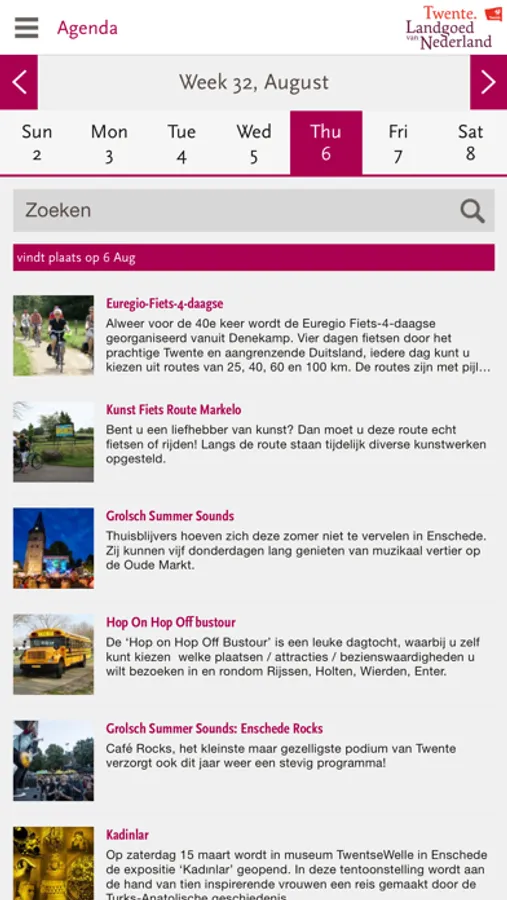 This App gives you an impression of the aspects that make Twente so unique. In the App you will find unique events, remarkable accommodations, culinary delights and special sights you should not miss when you visit Twente!