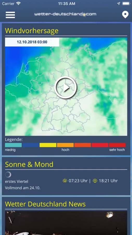 • Aktuelle Wetterdaten und Prognosen für jeden Ort in Deutschland
