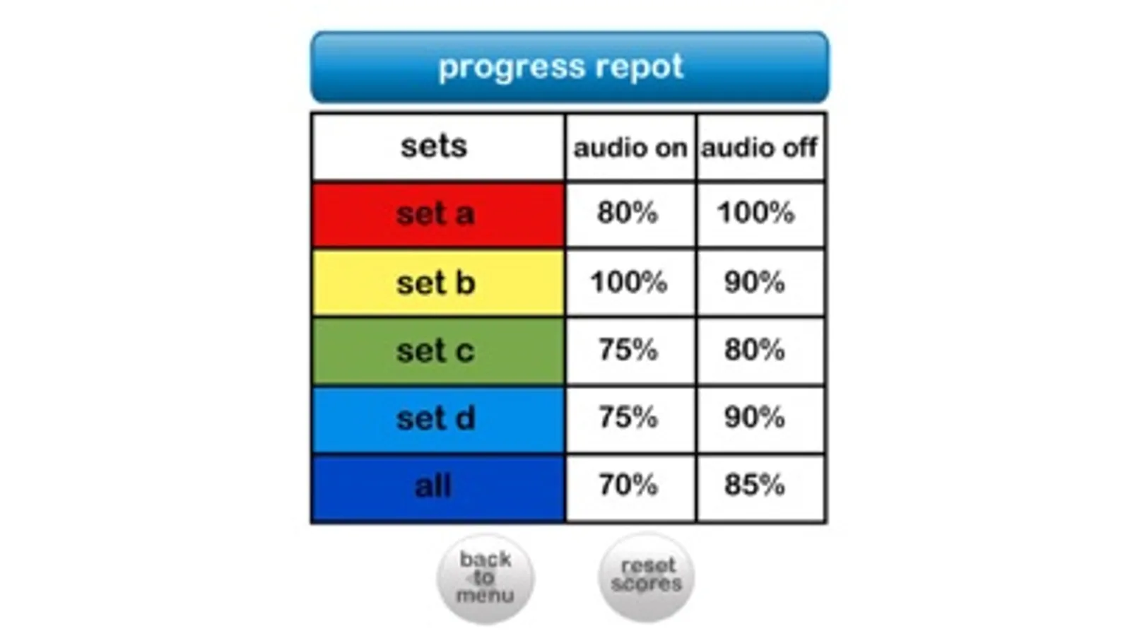Additionally, you are able to track your child's gains through progress reports that average the last 3 performances of each learning enhancement activity.