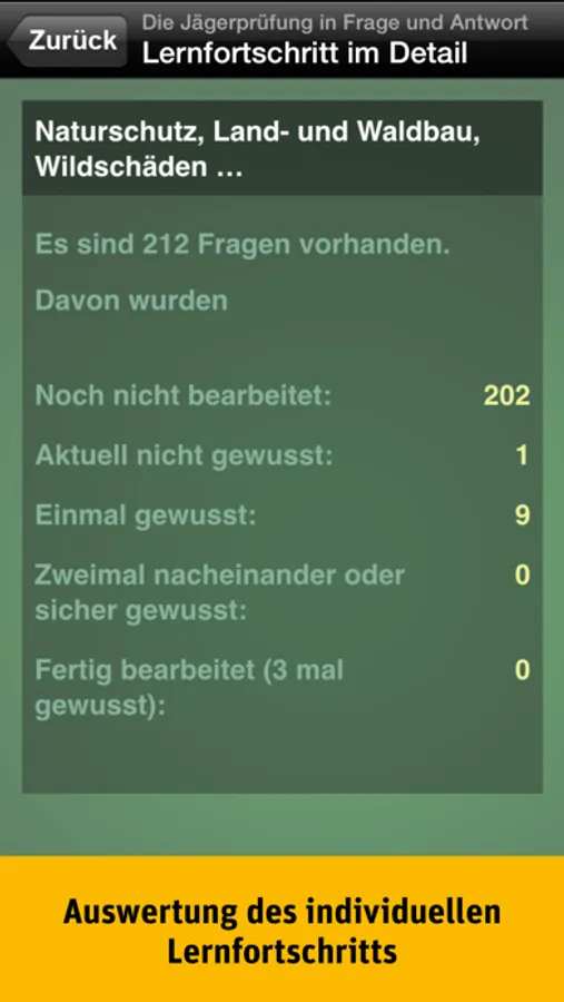 Dieses kompakte Lernprogramm stellt über 20.000 Fragen mit Musterlösungen aus allen Sachgebieten der Jägerprüfung im Multiple-Choice-Verfahren zur Verfügung. Neben mehr als 2.500 allgemeingültigen Übungsfragen, basierend auf Siegfried Seibts renommiertem Standardwerk „Grundwissen Jägerprüfung“, enthält die App die prüfungsrelevanten Fragenpools von Baden-Württemberg, Bayern, Brandenburg, Hamburg, Mecklenburg-Vorpommern, Niedersachsen, Nordrhein-Westfalen, Rheinland-Pfalz und dem Saarland.