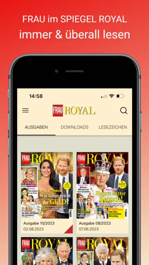 FRAU IM SPIEGEL ROYAL bringt Ihnen das Schönste aus der Welt der Königshäuser: Einzigartige Hintergrundstories, facettenreiche Porträts, emotionale Bilder sowie begeisternde Lifestyle-Geschichten aus der Welt des internationalen und nationalen Hochadels. Blicken Sie hinter die Palast-Türen bei Victoria, Kate, Maxima und Co!