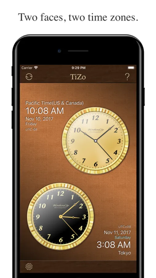 TiZo has two face dial and shows you the time of two time zones.