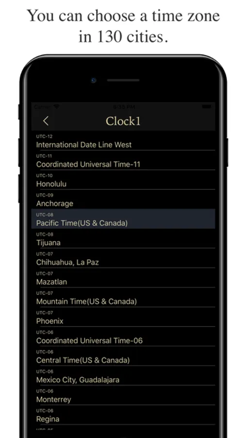 You can choose a time zone from 130 cities.