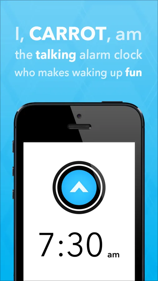 CARROT is the simplest alarm clock you’ll ever use. Just swipe up or down to choose your alarm time, then drag CARROT to the right or left to set your alarm. That’s it!