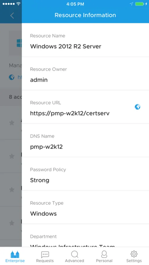 Password Manager Pro's iOS app brings enterprise password management to your fingertips. It is as secure as the Password Manager Pro installation and ensures data security with AES-256 encryption. With this easy-to-use app, you can: