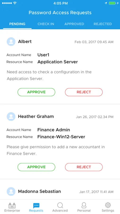 >> Let application admins to review and approve password access requests from employees and third-parties.