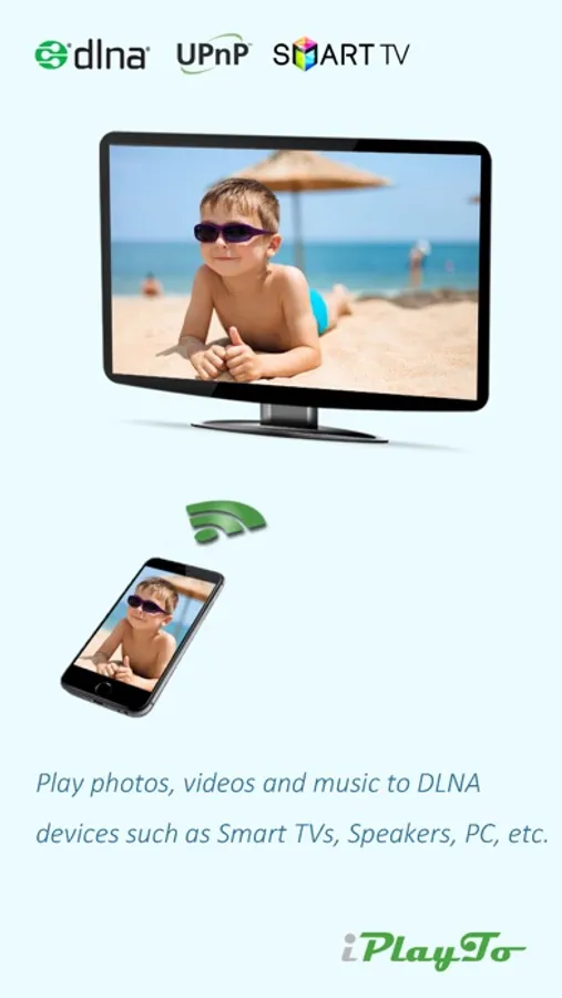 Anytime, anywhere, from any device - have fun with friends and family - with iPlayTo on your phone/pad, you can play your favorite photos, videos and music in any way you want, such as to a TV nearby, so you can share those moments with everyone to see and hear.