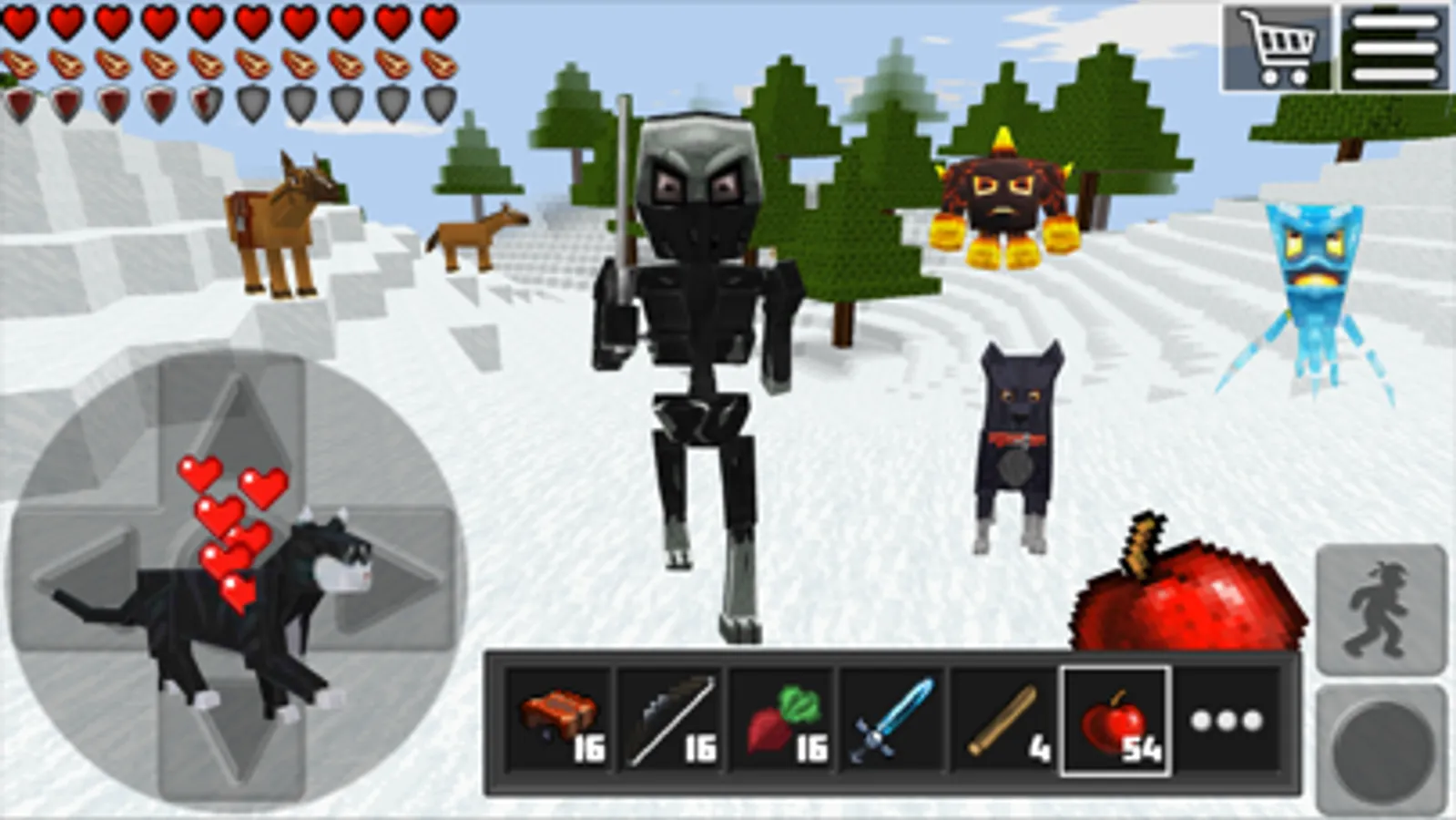 Start your own survival game on the infinite map! Find different resources, craft new items and build your own shelter to survive the nights! Watch out zombies, pumpkin heads and other aggressive mobs to save your health and hunt down eatable mobs (cows, horses, pigs, chickens) to overcome your hunger. Get compass with coordinates in order to easily orient in the infinite world. Don’t panic if you are dead in Survival mode – you can always get Resurrection pack instantly in the game’s Shop and get back all of your inventory after resurrection!