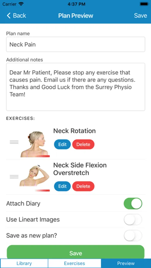 You can even attach your clinic details to each email and exercise hand-out, which is great for marketing and promotion.