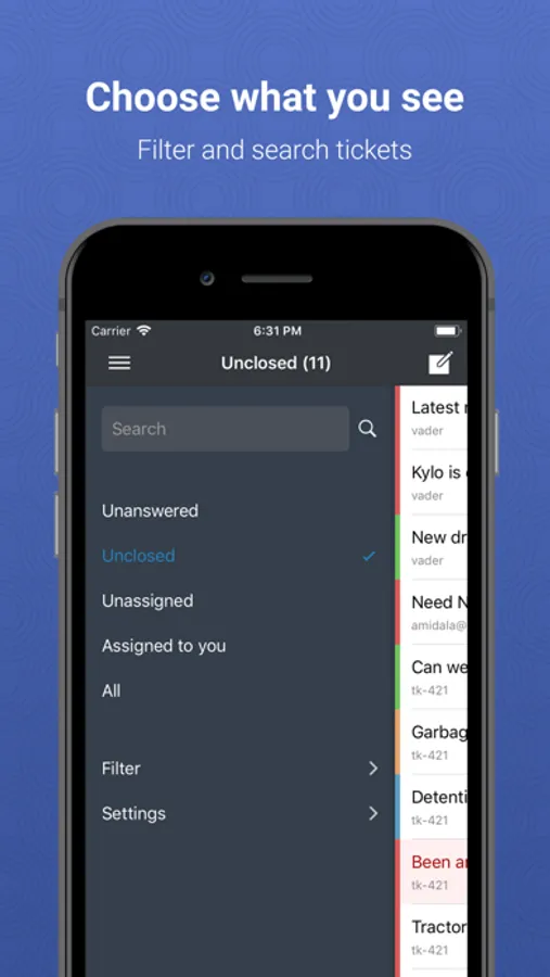 * Select view modes: Unanswered, Unclosed, All, etc.